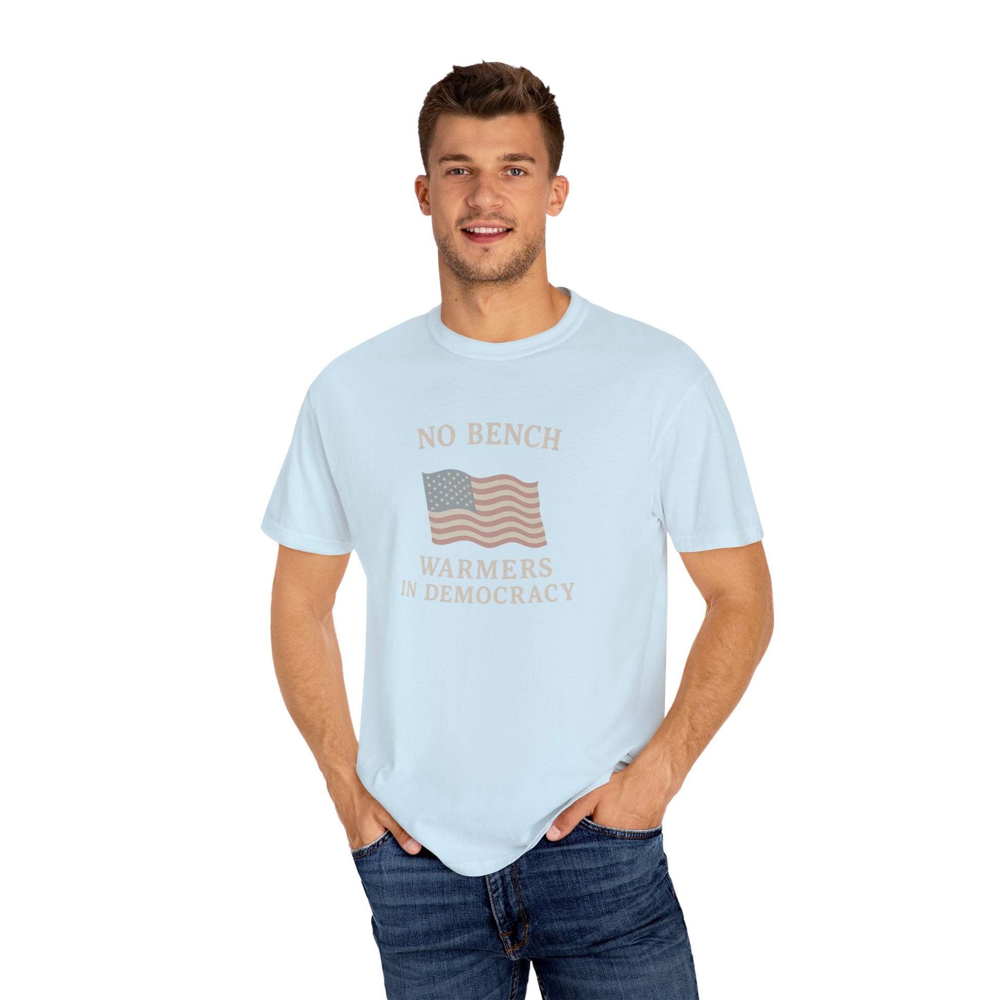 No Bench Warmers in Democracy T-Shirt – Patriotic Unisex Tee, Political Statement Shirt, Election Day Activist Wear